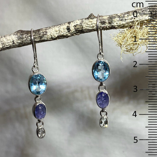 Faceted Oval Blue Topaz, Tanzanite & White Topaz Earrings