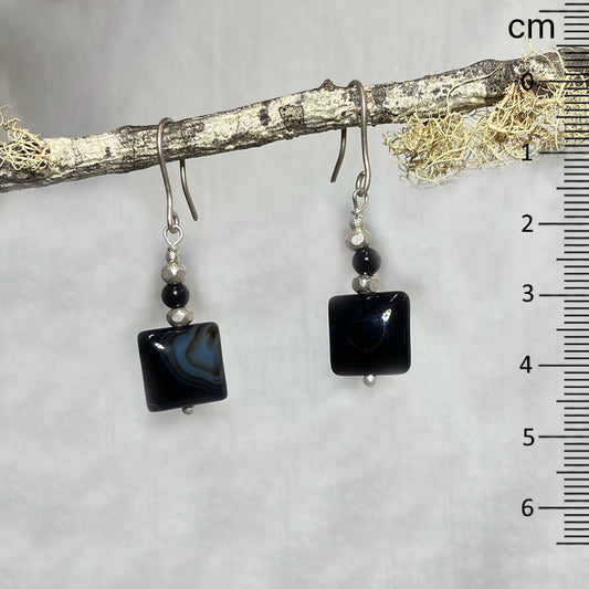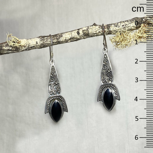 Black Onyx & Hilltribe Silver Earrings
