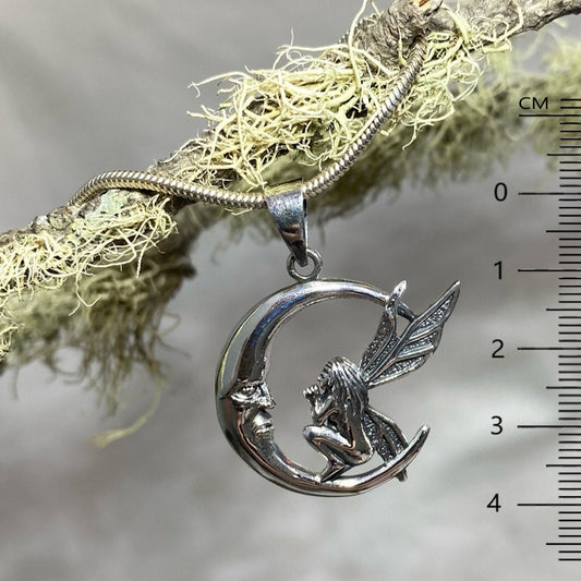 Sterling Silver Fairy and Moon Pendant