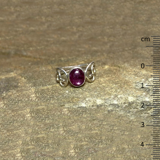 Oval Star Ruby Swirling Sterling Silver Ring- Size 6.5