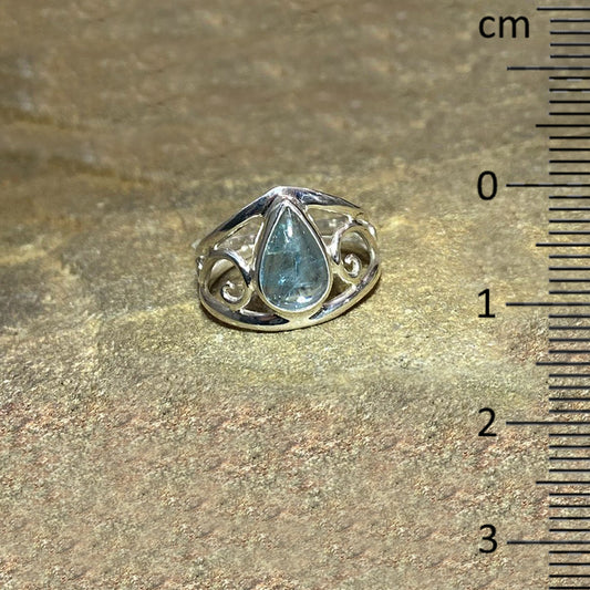 Teardrop Aquamarine Swirling Sterling Silver Ring- Size 8