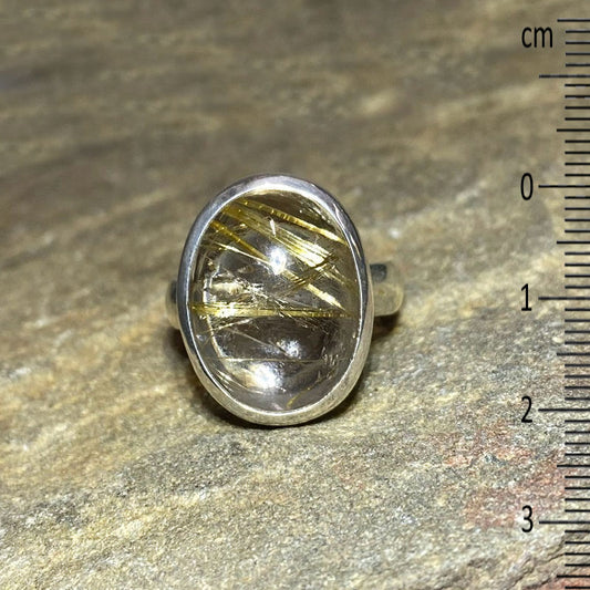 Faceted Oval Offset Clear Quartz Ring- Size 9