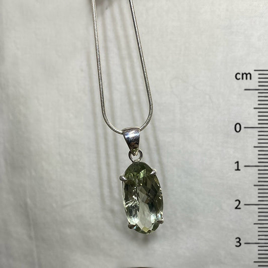 Faceted Oval Green Amethyst Pendant