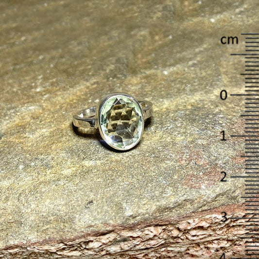 Faceted Oval Green Amethyst Ring- Size 7
