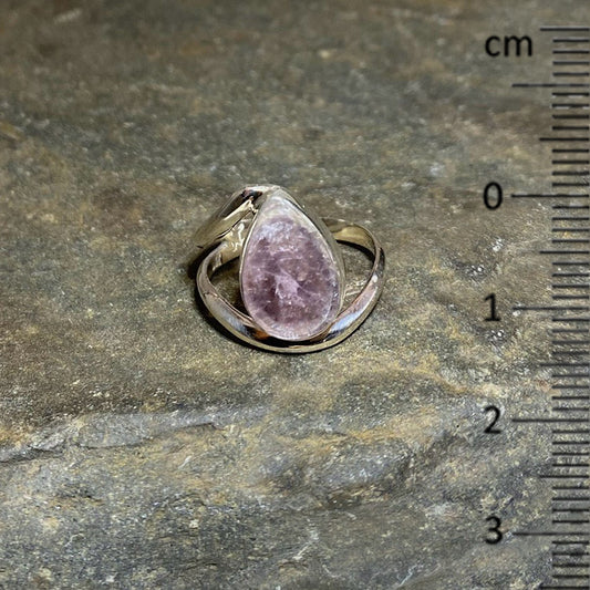 Offset Sterling Silver Teardrop Lepidolite Ring- Size 9
