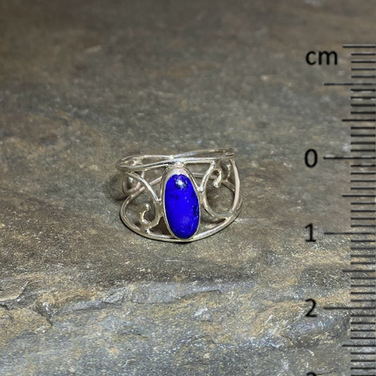 Swirling Sterling Silver Oval Lapis Lazuli Ring- Size 10