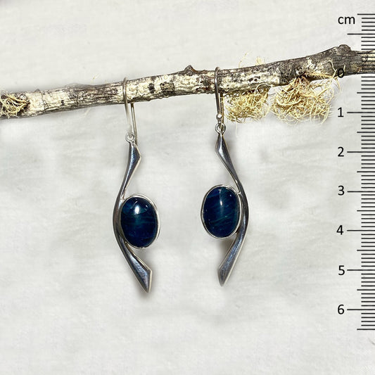 Oval Blue Kyanite Ornate Sterling Silver Earrings