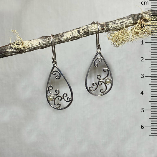 Round Pearl Swirling Sterling Silver Earrings