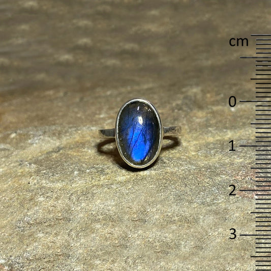 Oval Blue Flash Labradorite Ring- Size 7.5