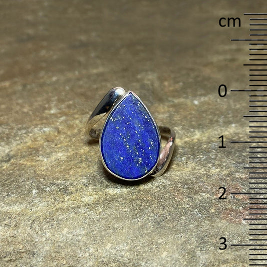 Matte Teardrop Lapis Lazuli Sterling Silver Offset Ring- Size 8