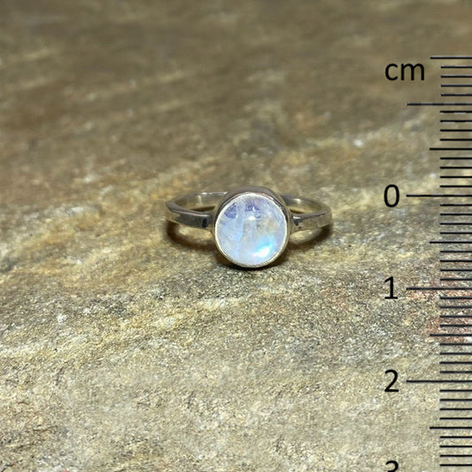 Round Rainbow Moonstone Ring- Size 7