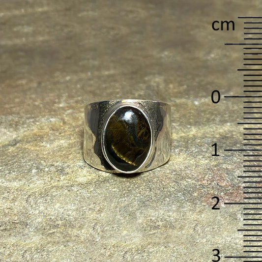 Oval Marra Mamba Tigers Eye Hammered Sterling Silver Ring- Size 7