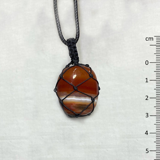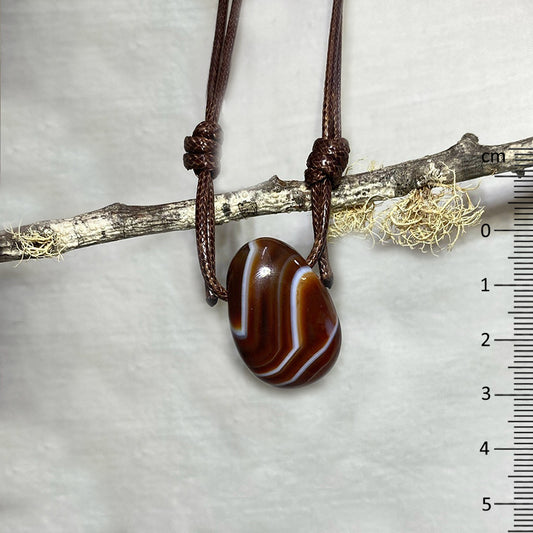 Adjustable Corded Tumbled Banded Carnelian Necklace