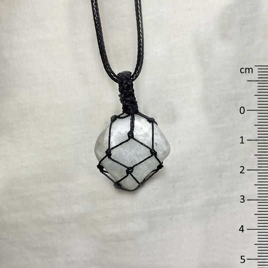 Adjustable Corded Tumbled Rainbow Moonstone Necklace