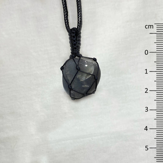 Adjustable Corded Tumbled Black Moonstone Necklace