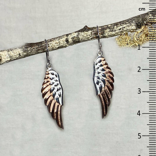 Sterling Silver & Rose Gold Angel Wing Earrings