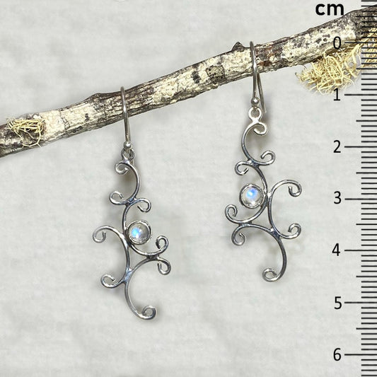 Round Rainbow Moonstone Ornate Sterling Silver Earrings