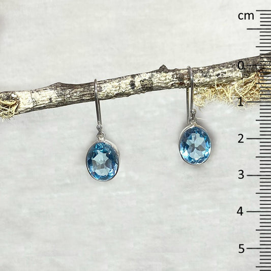 Faceted Oval Blue Topaz Earrings