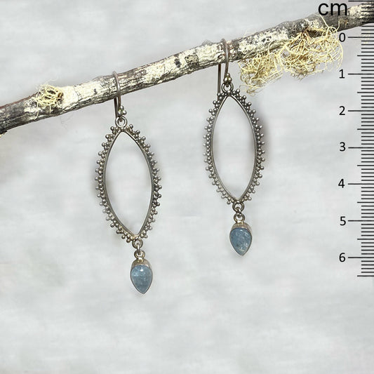 Pear Shaped Aquamarine Ornate Sterling Silver Earrings
