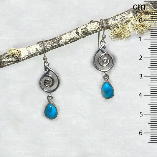 Teardrop Turquoise Ornate Sterling Silver Earrings