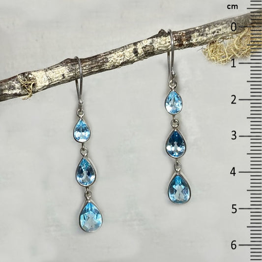 Faceted Teardrop Blue Topaz Chandelier Earrings