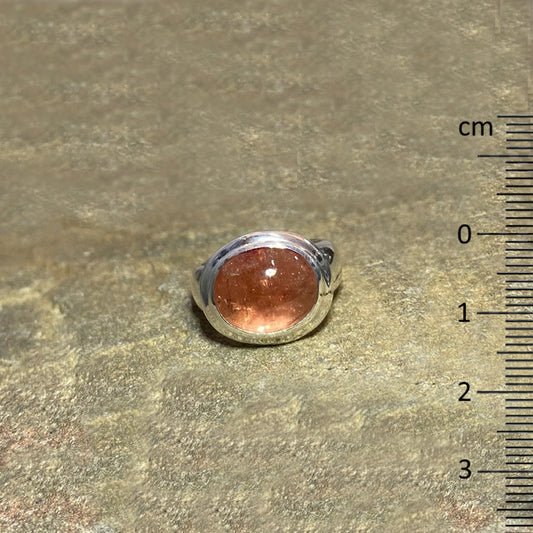 Oval Rainbow Moonstone Hammered Sterling Silver Band Ring- Size 10