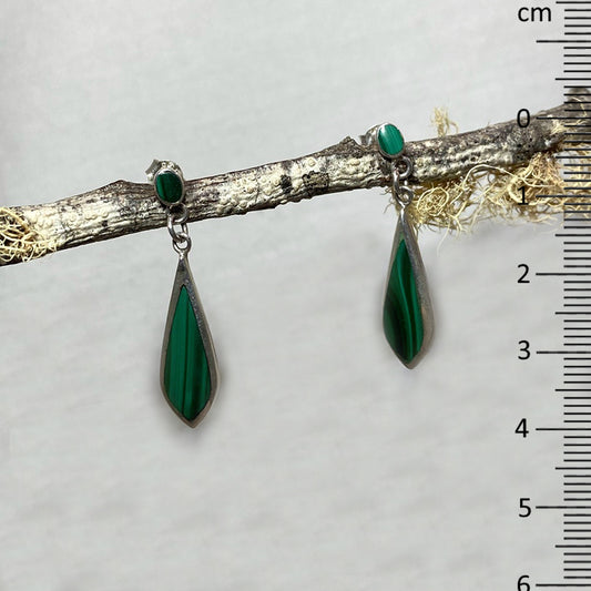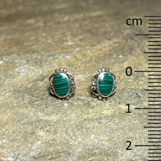 Oval Malachite Ornate Sterling Silver Stud Earrings