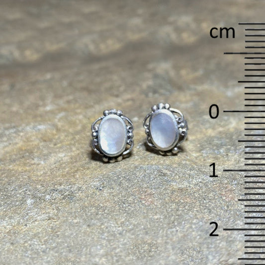 Oval Mother Of Pearl Ornate Sterling Silver Stud Earrings