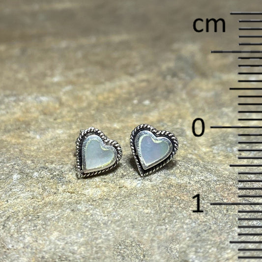Mother Of Pearl Heart Ornate Sterling Silver Stud Earrings