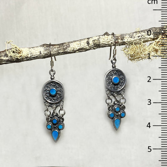 Ornate Sterling Silver Dream Catcher Turquoise Earrings