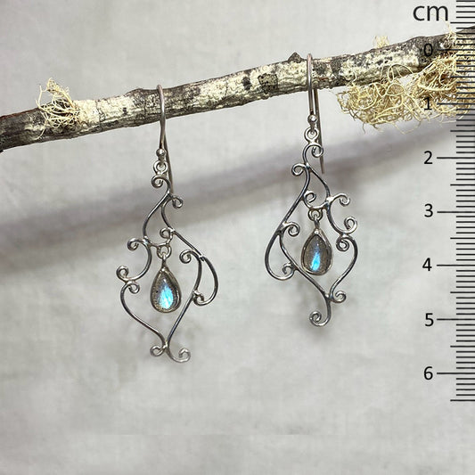 Ornate Sterling Silver Teardrop Labradorite Earrings