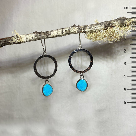 Round Hammered Sterling Silver & Freeform Kingman Turquoise Earrings