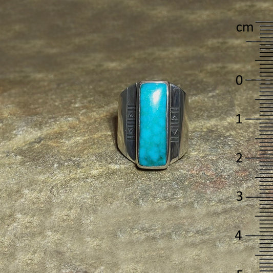 Ornate Sterling Silver Rectangle Sleeping Beauty Turquoise Ring- Size 8.5