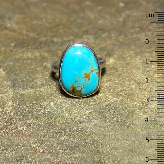 Offset Sterling Silver Oval Larimar Ring- Size 7.5
