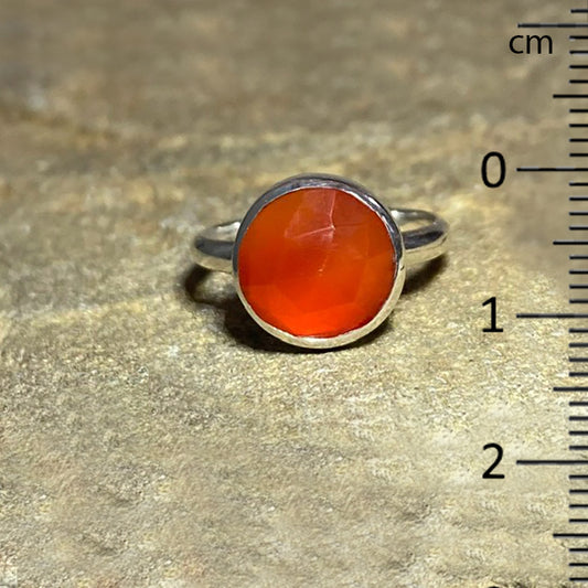 Round Faceted Carnelian Ring- Size 8