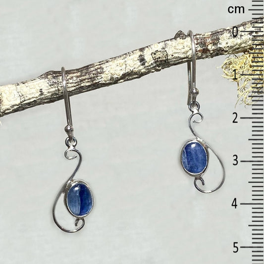 Oval Blue Kyanite Ornate Sterling Silver Earrings