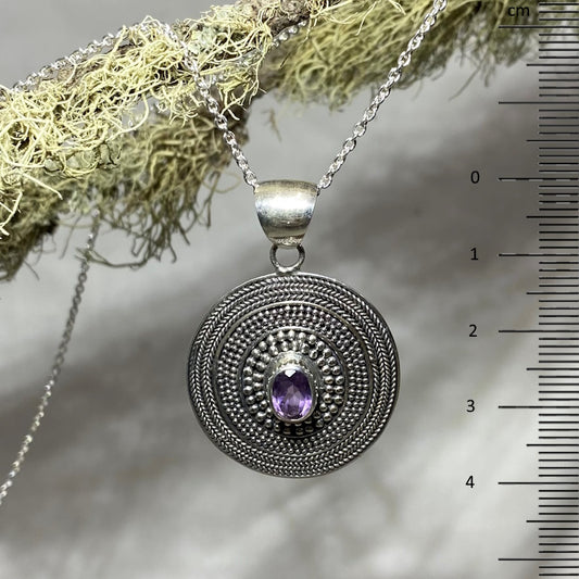 Hammered Sterling Silver Triangle Faceted Oval Blue Topaz Pendant