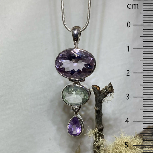 Faceted Pink Amethyst & Praisiolite Combination Pendant