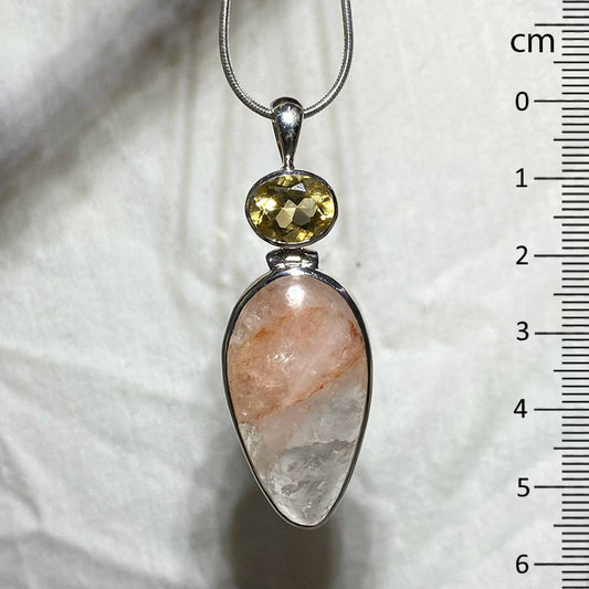 Faceted Citrine & Pear Shaped Fire Quartz Pendant