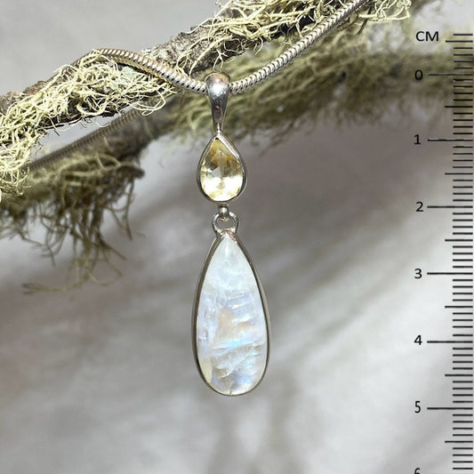 Combination Teardrop Rainbow Moonstone and Teardrop Faceted Citrine Pendant