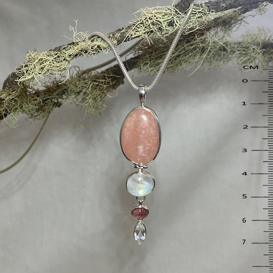Combination Morganite Rainbow Moonstone Pink Tourmaline Faceted White Topaz Pendant