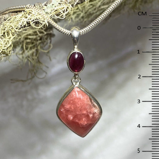 Artistic Sterling Silver Pear Shape Sunstone and Faceted Garnet Pendant