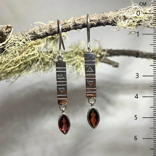 Sterling Silver Triangle Print Pear Shaped Faceted Earrings