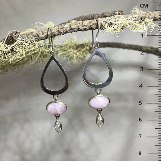 Teardrop Sterling Silver Kunzite and White Topaz Earrings