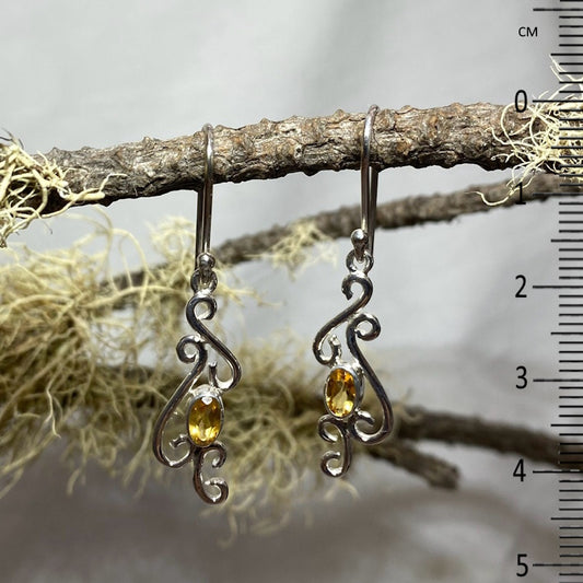 Ornate Sterling Silver Teardrop Citrine Earrings