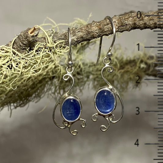Scrolling Sterling Silver Blue Kyanite Earrings