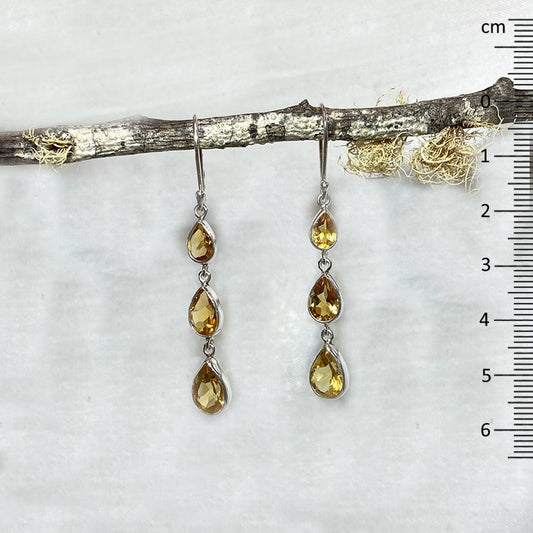 Faceted Three-Tiered Teardrop Citrine Earrings