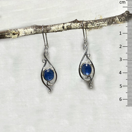 Oval Blue Kyanite Ornate Sterling Silver Earrings