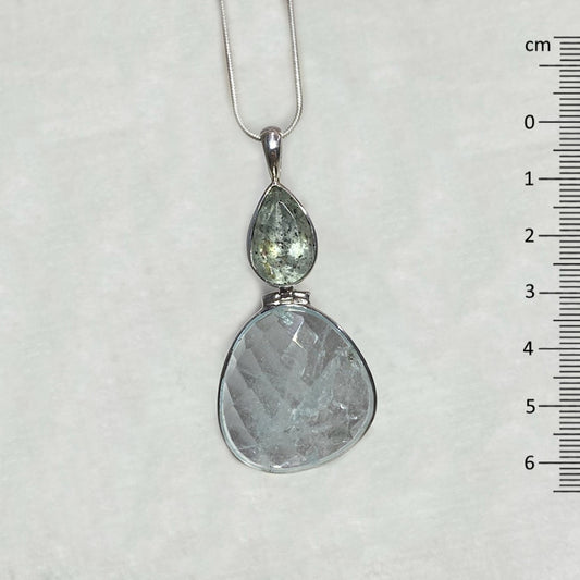 Combination Round Emerald Kyanite & Natural Aquamarine Pendant