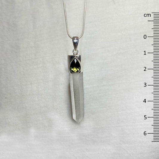 Combination Faceted Teardrop Moldavite & Natural Clear Quartz Pendant